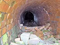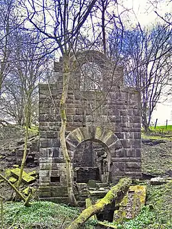 - Railway Pit 53°45′50″N 2°12′07″W / 53.764°N 2.202°W at Walk Mill in Cliviger was the furthest of the Cliviger Colliery Company's pits from the Burnley to Todmorden Railway. It was sunk about 1840 and its workings eventually stretched for almost four miles towards Hurstwood. It was accessed by two sloping drifts. Coal was moved to the sidings and coke ovens near the railway along a tramway. Candles were used for light in the pit.[54] It accessed the Arley seam. The pit closed in 1938.[84] The arched entrance to the drift, the engine house and evidence of the tramway remain.[54][85]