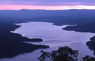 With the boom in Sydney's population after World War II, the Warragamba Dam was constructed between 1948 and 1960[8] on the Warragamba River, inundating the Burragorang Valley, creating Lake Burragorang. Consequently, the town of Burragorang and others like it in the valley were lost under water.[6]