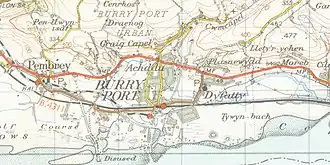 The station was opened as Burry Port in 1898 but regular passenger services began on 2 August 1909 by the Burry Port and Gwendraeth Valley Railway on the Kidwelly and Burry Port section of the line and was closed by the British Transport Commission in 1953 with the last passenger train running on Saturday 19 September 1953.[1] It was on the southern section of the Burry Port and Gwendraeth Valley Railway with Pembrey to the north and Burry Port as the terminus of the passenger line.[2]