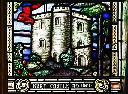 Burt Castle is a ruined castle located close to Newtowncunningham and Burt, two villages in the east of County Donegal in Ulster, Ireland. Historically it was sometimes spelt as Birt Castle. It is also known by the name O'Doherty's Castle, and should not be mistaken for O'Doherty's Keep near Buncrana.