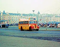 When the service was bought by the Isle of Man government in 1976 the buses carried National Transport logos and a new livery, predominantly of red with white trim, having previously carried a variation of this colour scheme under the Road Services banner. The publicly-owned service used many second-hand vehicles from the United Kingdom and Ireland, a practice which continued until relatively recently, from a variety of sources including Liverpool Corporation, Preston Borough Transport and Ribble Motor Services. Such vehicle types included Leyland Atlanteans from Merseyside PTE, Portsmouth City Transport, SELNEC and Tyne & Wear PTE, Leyland Olympians from Devon General, Dublin Bus and Stagecoach, and Leyland Lynxes from Halton Transport.[2]