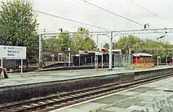 Platforms 3 and 4 are by far the least used, since these fast main line tracks are normally used by trains not stopping at Bushey. Platform 3 is accessed via the stairway for platform 2 and is fitted with a remotely operated gate to prevent access when the platform is not in operation. Platforms 3 and 4 were brought back into use for the December 2011 timetable, which marks some services as "front four coaches only for Bushey", allowing an improved late evening and weekend connection with London.[6] Prior to this reinstatement, engineering works frequently meant that late-evening London Midland services could not stop at Bushey as a northbound platform was not available. It was overgrown after having fallen into disuse many years earlier and boarded off following its partial destruction during the crash of February 1980: the locomotive and leading two coaches passed through the station before coming to a stand having destroyed the platform face.[7][8]