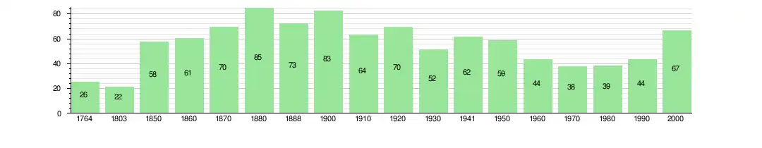 As of 2000, there were 27 people who were single and never married in the municipality. There were 33 married individuals, 4 widows or widowers and 3 individuals who are divorced.[8]