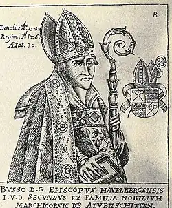 Busso X von Alvensleben (1468 – 4 May 1548 in Wittstock) was a Catholic ecclesiastical diplomat and from 1523 to 1548 as Busso II, the last Catholic Bishop of Havelberg.