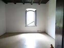The "Bandeirante's House" is considered one of the most faithful examples of the standard of living of the Bandeirantes and Paulista farmers of this period. This rectangular house of 17.70 x 20.20 m is composed of twelve rooms, each with its own determined use. There are two porches: one in the front, the other in the back.[5][23] The front one has a 1 m high wall. On the porch, the central door leads to the living room that connects the main rooms. Another door in the center connects the dining room, located next to two rooms, one possibly used for housework, housing a weaving loom, hammock loom, folding machine, spinning wheel, etc.[5][23] The middle one communicates with the service porch, which gives access to the room where the harnesses and baskets were kept, and which also served as a workshop for repairs. On the other side was the room where the supplies and water for daily consumption were kept.[5][23] One of the doors leads to the chapel, where masses and novenas were celebrated.[23] The sleeping rooms were all lined with wide, Ocotea catharinensis planks. These boards were removed by people who lived nearby when the house was vacated. The windows of the bedrooms were blocked with wooden bars, which made these rooms excellent "prisons" for the children of the house, when they got into mischief.[24]