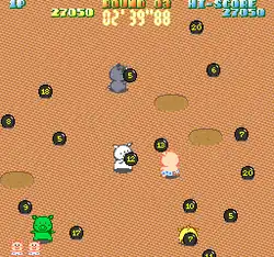 A bonus sub-game involves random pigs popping out of holes, and the player must knock them back down the hole with their own pig, in a similar mode of gameplay to Whack-a-mole.