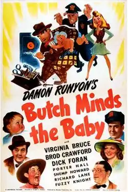 Butch Minds the Baby is a 1942 American comedy film directed by Albert S. Rogell and written by Leonard Spigelgass, based on the short story of the same name by Damon Runyon. The film stars Virginia Bruce, Broderick Crawford, Dick Foran, Porter Hall, Richard Lane and Shemp Howard. The film was released on March 20, 1942, by Universal Pictures.[1][2][3]