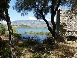 Butrint is part of a diverse hydrographical network, composed by the courses of several rivers, lagoons and lakes. The rivers are short, steep and characterised by high water volume.[8] The park comprises Lake Butrint in the northwest, Lake Bufi in the southeast, Bistrica River in the north, Mile Mountain in the west and Pavllo River in the south.[9]