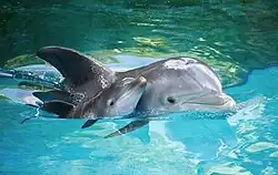 The coastal waters around the park are frequented by dolphins such as the common bottlenose dolphin, short-beaked common dolphin and occasionally by the striped dolphin.[11][13] The park provides one of the last remaining nesting habitat for the endangered mediterranean monk seal that is present in the rocks and caverns of the park.[14][15][16] Sea turtles are not really that uncommon in the shallow coastal waters of the park.[11] There are two species of sea turtles, such as the loggerhead sea turtle and leatherback sea turtle, that are listed as endangered or threatened by state authorities.[13][17]