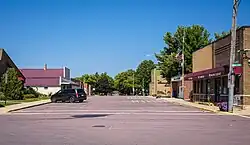 Butterfield was platted in 1872.[6] Butterfield developed as a railroad town and was incorporated on April 5, 1885.[1] The community was named for William Butterfield, the original owner of the town site.[7][8]