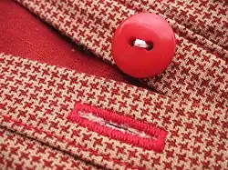 • A keyhole buttonhole is a special case of a thread-finished buttonhole that has a round hole at the end of the buttonhole slit, reinforced with a fan-shaped array of stitches. Because a button-closed gap in a garment is normally under some stress, the button will tend to move towards the end of the buttonhole closest to the gap in the garment.[16] A keyhole at the end of the buttonhole closest to the gap accommodates the button's shank without distorting the fabric. Keyhole buttonholes are most often found on tailored coats and jackets.[12] This buttonhole is normally machine-made due to the difficulty of achieving it by hand working.