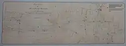 On 9 July 1766, during a meeting of the Committee of the Crown Treasury, a plan was presented by artillery captain and royal geographer Franciszek Florian Czaki. He proposed to build the canal where the Noteć was the closest to Bydgoszcz.[7] It was planned to be 10.5 kilometres (6.5 mi) long, 9 metres (30 ft) wide and 3.5 metres (11 ft) deep. The level difference (18 metres (59 ft)) between the Brda and the Noteć was compensated by six water locks. Construction would have been carried out by a private company, which would then have received the right to collect taxes in return.[6] Approval for building this project was not given by the Sejm, due to the political turmoils of the time (1768): Bar Confederation, then First Partition of Poland. In retrospect, the project was not devoid of technical defects, especially in under-estimating the requirement of water resources that could be found locally (streams and wetlands).[5]