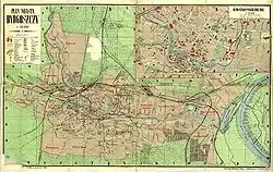 In 1925, Bydgoszcz established Poland's only Timber Exchange, leveraging the port's 95-hectare capacity to store 300,000 m³ of timber.[5] Several large sawmills operated, and new ones opened. However, post-1924 export declines and market stagnation reduced production, closing some sawmills. By the late 1930s, only small and a few medium-sized sawmills, plus one large State Forests sawmill expanded after 1935 with 500 employees, remained.[6] Timber industry employment dropped from 1,500 in 1923 to 1,600 in 1930, and 800 in 1932.[7] Key enterprises included the Plywood Factory (now Bydgoszcz Plywood Factory), exporting to countries like England and France, and O. and K. Pfefferkorn's Furniture Factory (now Bydgoszcz Furniture Factory).[8]