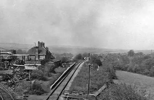 Byers Green railway station was opened in 1837 by the Clarence Railway, after it opened its Byers Green branch from Ferryhill in 1837.[3] From 1840 it became a junction station, between the Clarence and the West Durham Railway towards Crook. Passenger services were withdrawn on 4 December 1939, when the passenger service from Ferryhill was cut back to Spennymoor. Goods were handled at Byers Green until 2 June 1958.