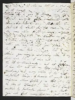 On 29 October 1819 he announced that he had given the Memoirs, which took his story as far as 1816, to his friend Thomas Moore, the poet, and repeated that they were "[not] for publication during my life – but when I am cold – you may do what you please."[3][5] Moore accepted this restriction, and good-humouredly looked forward to bequeathing the book to his son, "who shall astonish the latter days of the nineteenth century with it".[6] Between 1820 and 1821 Byron added a second portion,[7] bringing the Memoirs to a length of at least 120,000 words. The complete Memoirs, all in Moore's possession, were handed out by him to a large number of readers in the fashionable world, so many indeed that the manuscripts were in danger of falling apart from overuse, so that Moore was obliged to have a copy made.[8] In July 1821, with Byron's blessing, Moore sold the manuscript and the copy to Murray for the enormous sum of £2100, but then Byron had second thoughts and the deal was renegotiated to give Moore and himself the power to buy back the Memoirs during Byron's lifetime.[9][10] They still remained in manuscript when Byron died on 19 April 1824 at Missolonghi in Greece.