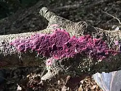 Byssomerulius psittacinus is a species of crust fungus in the family Irpicaceae. It was described as new to science in 2000 by mycologists Peter Buchanan, Leif Ryvarden, and Masana Izawa. The type was found in Fiordland National Park, where it was growing on the dead wood of Nothofagus. The specific epithet psittacinus ("parrot-like") refers to the wide range of colours observed in the fruit bodies. Initially a striking reddish-purple when fresh, it dries to brownish orange, pale orange yellow, or pale orange.[1]