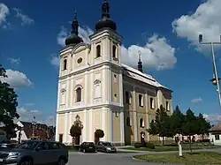 The Church of Saint John the Baptist and Our Lady of Mount Carmel in one of the largest Baroque churches in the region. It was originally built in the 12th century and rebuilt in 1601. The current appearance is after reconstructions in the 1720s. Its rarity is the decoration, which is exclusively wood. The nearby rectory was built in 1690–1692.[3][8]