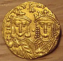 Leo was the son of Emperor Constantine V by his first wife, Tzitzak of Khazaria (known as Irene upon her conversion),[35] the daughter of a Khagan of the Khazars (thought to be Bihar). Crowned co-emperor by his father in 751 Leo then married Irene, an Athenian from a noble family, in December 769. In 775 Constantine V died, leaving Leo as sole emperor.[36]