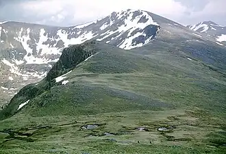 Typical of the Scottish Highlands, the slopes of the mountain are largely treeless, especially at higher altitudes. The mountain is instead clad in a variety of grasses and mosses, which towards the summit are covered by snow during parts of the year. The lower slopes are described by Muir as "boggy, sodden moorland".[13] The base of the southern side of the mountain, adjacent to Loch Affric, is wooded with Scots pine interspersed with other species such as oak, birch, and beech.[14] These woods are inhabited by a number of endemic fauna, including the crested tit and the Scottish crossbill.[15]