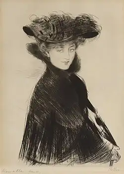 She was painted by François Flameng[3] and her likeness appears in a fresco by Charles Hoffbauer on the ceiling of the cupola at the Château d'Artigny in Montbazon, once owned by François Coty. A college in the town of Mériel is named after her.