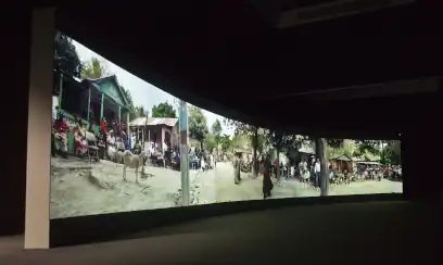 Their Venice Biennale project, Halka/Haiti: 18° 48'05" N 72° 23'01" W (2015/2018), was inspired by a little-known historical connection between Haiti and Poland and the 1982 Werner Herzog film Fitzcarraldo, about a mad visionary obsessed with bringing live opera to the Amazon.[11][34][35] The history involved a group of Haitian people, the Poloné, who descended from early 19th-century Polish soldiers that were sent to put down the island's slave rebellion, but instead defected.[36][37][35] For the project, the artists filmed their outdoor staging of a canonical Polish national opera, Stanisław Moniuszko's Halka, in the village of Casale, Haiti, the population center of the Poloné.[38][34][10] The cast and crew were a mix of Poles and Haitians, including soloists from the Poznan Opera House, musicians from a Port-au-Prince orchestra and dancers from Cazale.[38][10][11] The exhibited work—shot in an immersive manner with four cameras capturing both on- and off-stage action—was presented in a panoramic form related to the painted dioramas of natural history museums.[39][40][26]