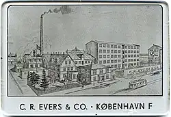 C.R. Evers & Co. was founded by Christian Rudolph Evers (1821-1877) in 1867.[1] Educated as a pharmacist in 1843, had later worked first as a merchant in Vejle and then as a brewer and manufacturer of candles in Ribe. In 1984 he was granted a royal monopoly on the production of a malt extract of his own invention. The malt extract came in a small tin box and was used for a preparation of a "tasty, potent beer-like drink". He was that same year also granted a patent on the malt extract in Sweden, Belgium, France, Austria and Hungary. The name C.R. Evers & Co. was adopted when the cost of obtaining these patents forced him to enter into a partnership with other investors.[2]
