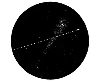 ![]() Comet Barnard–Denning as sketched by William F. Denning on 4 April 1891, alongside a passing meteor. | |