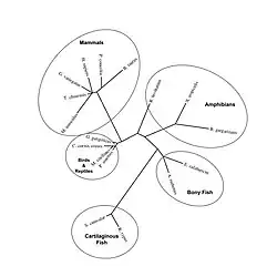 - ^ Redmond AK, Macqueen DJ, Dooley H (November 2018). "Phylotranscriptomics suggests the jawed vertebrate ancestor could generate diverse helper and regulatory T cell subsets". BMC Evolutionary Biology. 18 (1): 169. Bibcode:2018BMCEE..18..169R. doi:10.1186/s12862-018-1290-2. PMC 6238376. PMID 30442091.