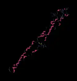 C8orf48 protein has two predicted nuclear localization signals one spanning from 135-149 amino acids and the other from 204-221.[7] The secondary structure of C8orf48 protein is composed of primarily alpha-helices and coiled coils. The structure is composed of very little beta sheets, a total of three areas demonstrate possible beta sheet structure.[16]