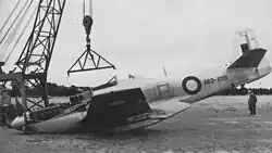 Development was further slowed by the end of the war, with the prototype flying for the first time on 4 March 1946,[6] and was flown by CAC test pilot Jim Schofield, who also flew the first Australian built P-51. The prototype was assigned RAAF serial number A62-1001. According to aviation historian Darren Crick, it achieved a calibrated level flight speed of 448 mph (721 km/h) at 26,400 ft (8,046 m). Test flights came to an abrupt ending when Flt Lt J. A. L. Archer suffered a hydraulic failure (later found to be a leaking ground test gauge) on approach to Point Cook on 10 December 1946, which left him no choice but to orbit and burn off fuel. The main gear was only halfway down and unable to be retracted or lowered any further but the tail wheel was down and locked. On landing, the tail wheel struck the airstrip first causing the aircraft to porpoise and finally, the airscoop dug in. The aircraft settled back on the fuselage and skidded to a stop, heavily damaged.[5] After repairs at CAC, the aircraft was returned to ARDU in 1948. Archer reportedly achieved a speed of 502.2 mph (803 km/h) over Melbourne, after levelling out of a dive of 4,000 ft (1,200 m), on 25 May 1948.[7]