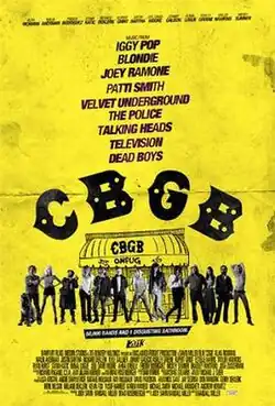 CBGB is a 2013 American biographical drama film about the former New York music venue CBGB.[2] It follows the story of Hilly Kristal's New York club from its concept as a venue for Country, Bluegrass and Blues (CBGB) to what it ultimately became: the birthplace of underground rock 'n' roll and punk.[3] The film uses devices such as comic book-style panels, as well as onscreen text to identify important figures in the punk movement.