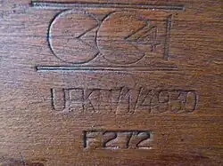 The CC41 symbol could be attached to a Utility product as a label, printed directly onto cloth, or impressed mark, as on furniture and early examples of Utility footwear.