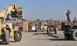 The 593d SB was replaced by the 43rd Sustainment Brigade "Trailblazers" commanded by COL Todd Huessner and CSM Anthony Traylor which operated three CMRE retrograde sort yards (RSY) at different airfields (Kandahar, Bagram, and Camp John Pratt) and facilitated 220 base closures and transfers. The Trailblazers established seven forward retrograde elements (FRE) – a coarse retrograde sorting area that expedited sorting operations by 52% and reduced intra-theater retrograde transportation by 73%, as compared to existing doctrinal practices from Operation New Dawn withdrawing from Iraq. The 43d SBDE withdrew excess materiel on the battlefield out of nearly 125 FOBs in Regional Commands North, East, South, Capital, Southwest and West. The brigade achieved all this, while simultaneously collaborating with numerous logistics entities such as the Defense Logistics Agency-Disposal Services, [[ United States Army Communications-Electronics Command]], Army Command, Tank and Armament Command, Army Materiel Command and Expeditionary Disposal Remediation Teams.