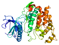 - ^ Hanes J, von der Kammer H, Klaudiny J, Scheit KH (Jan 1995). "Characterization by cDNA cloning of two new human protein kinases. Evidence by sequence comparison of a new family of mammalian protein kinases". J Mol Biol. 244 (5): 665–72. doi:10.1006/jmbi.1994.1763. PMID 7990150.