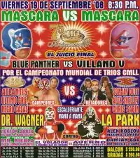 - ^ Flores, Manuel (September 20, 2008). "75 Anniversario – Blue Panther se despoja de su máscara" (in Spanish). Super Luchas. Retrieved September 19, 2009.
