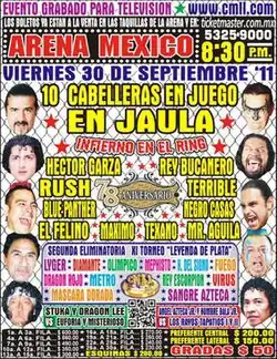 | 4 | El Felino defeated Rey Bucanero Also in the match: Rush, Mr. Águila, El Terrible vs. El Texano Jr., Héctor Garza, Máximo, Blue Panther, Negro Casas | 10-man steel cage elimination match Lucha de Apuestas, "hair vs. hair" match.[17] |