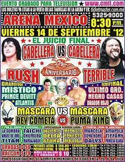 - ^ Valdés, Apolo (September 14, 2012). "El 79 aniversario del CMLL ¡Minuto a minuto en vivo!". MedioTiempo (in Spanish). Retrieved September 15, 2012.