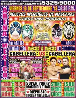 - ^ a b Meltzer, Dave (September 13, 2013). "CMLL 80th anniversary show live coverage from Arena Mexico - Volador Jr. vs. La Sombra is your mask vs. mask main event". Wrestling Observer Newsletter. Retrieved September 14, 2013.