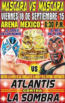 - ^ a b Angelita, Dark (August 19, 2015). "CMLL: Conferencia de prensa de la función del 82 Aniversario; es oficial, Atlantis vs. La Sombra por las máscaras". Súper Luchas (in Spanish). Retrieved August 19, 2015.