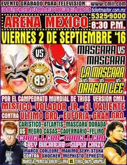 - ^ a b c d e f g Ocampo, Ernesto (September 2, 2016). "Resultados CMLL 83 Aniversario: La Máscara vs. Dragon Lee, máscara contra máscara". Súper Luchas (in Spanish). Retrieved September 2, 2016.