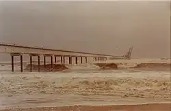 At Owendo COMILOG operates a private ore shipment terminal and storage facilities with capacity for three months' production.[17] The ore shipment port at Owendo was inaugurated in 1988, and the cableway was shut down in 1991.[9] The company laid off 955 workers. The workers claimed compensation for unfair dismissal, but the case dragged out until September 2015, when the Court of Appeal of Paris ordered COMILOG to compensate the workers.[18] After ore shipments stopped the Republic of the Congo expropriated the track and equipment in their country, worth about 60 billion CFA francs.[11] The COMILOG railway in the DRC was taken over by the CFCO (Chemin de fer Congo-Océan) and is the main means of transport for people and goods north of Niari.[2] The aerial cableway was sold to South Korea and dismantled in 1993.[11]