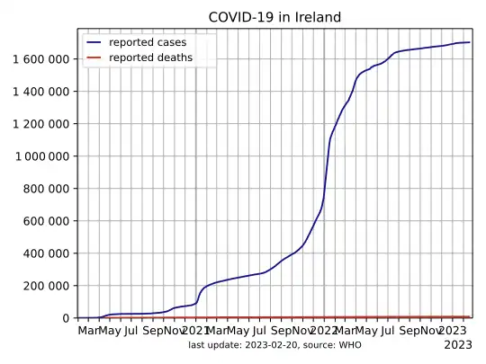 - ^ McGreevy, Ronan (10 January 2022). "How Ireland reached 1 million confirmed cases of Covid-19". The Irish Times. Retrieved 22 February 2022.