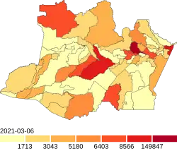 ![]() Municipalities in the state of Amazonas with case numbers per 100,000 inhabitants | |