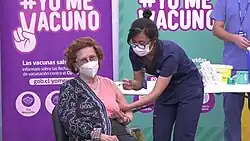Chile became one of the first countries to start a nationwide program to vaccinate against COVID-19. On 24 December 2020, the first batch of vaccines arrived in the country to inoculate mainly health workers.[13] With larger batches of vaccines (mainly Sinovac's CoronaVac) arriving from February 2021, Chile became one of the fastest countries in the world to inoculate their population: by March 2021 a quarter of the population had received at least one dose. This fast response was due to signing contracts with multiple providers, a strong public immunization program, and little anti-vaccine sentiment.[14] Despite the success of the vaccination program the number of cases increased, which has been attributed to early relaxation of restrictions and a false sense of security.[15][16][17]