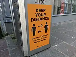 On 24 January 2021, the Health Minister announced the island would move to Stage 2 of the re-connection strategy from 27 January and close-contact businesses from 3 February.[49] It was also announced that islanders would no longer need a referral note for a massage or acupuncture treatment when they reopen.[50] On 26 January, Health Minister Richard Renouf announced the move to Stage 2 would be delayed until 3 February (and close-contact businesses until 10 February) due to a cluster of infections related to staff working in the supply chain of the retail industry.[51] Non-essential retail re-opened from 3 February (nine days later than originally planned) and close-contact businesses were allowed to resume trade from 10 February.[51] On 3 February, it was reported that the town centre was busy, especially King Street.[52] An advisory 'Keep Left' one-way system was implemented on St Helier's high street to help maintain physical distancing.[53]