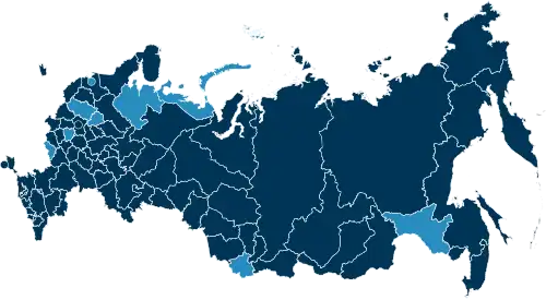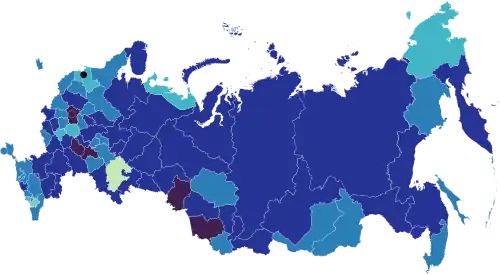 On 1 April, the "self-isolation regime" was announced in the disputed territory of Crimea and Sevastopol,[108] the republic of North Ossetia–Alania,[109] Kamchatka[110] and Khabarovsk[111] krais, Ivanovo[112] and Orenburg[113] oblasts. On 2 April, the measures were announced in Amur Oblast (for those over 65), Tyumen Oblast,[114] and Chukotka Autonomous Okrug.[115] On 3 April, the measures were announced in Oryol Oblast[116] and Tula Oblast (for those over 65).[117]