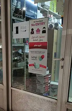 - ^ ""البلديات" توجّه بإغلاق أماكن الألعاب والأنشطة الترفيهية في المجمّعات التجارية، وتعقيم وتهوية أماكن تقديم الأطعمة والمشروبات" (in Arabic). 22 March 2020. Retrieved 4 October 2020.