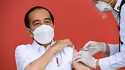The COVID-19 vaccination in Indonesia is an ongoing mass immunization in response to the COVID-19 pandemic in Indonesia. On 13 January 2021, the program commenced when President Joko Widodo was vaccinated at the presidential palace.[1] In terms of total doses given, Indonesia ranks third in Asia and fifth in the world.[2]