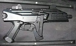 The Scorpion Evo 3 is a blowback operated carbine evolved from a Slovak prototype submachine gun developed by Laugo.[1][2]