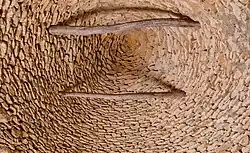 - a vault of corbelled and outward-inclining stones;